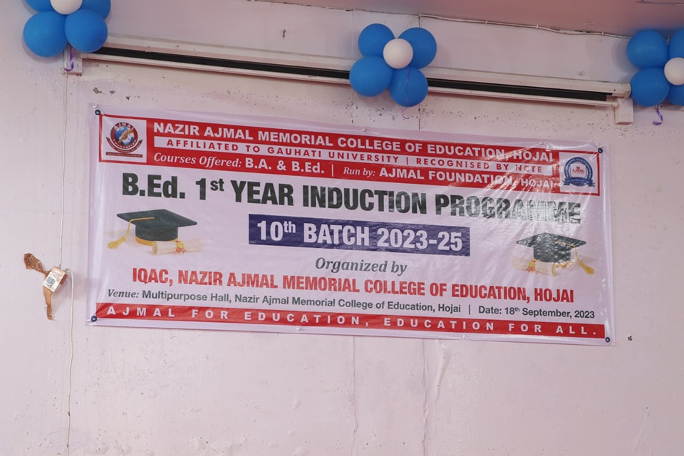 The IQAC, Nazir Ajmal Memorial College of Education, Hojai organised Deeksharambh - 3-Day Induction Program for the newly admitted B.Ed. 1st Semester trainees. The event was organised from 2nd to 4th September, 2025 from 10 am onwards at Nazir Ajmal Memorial Hall.