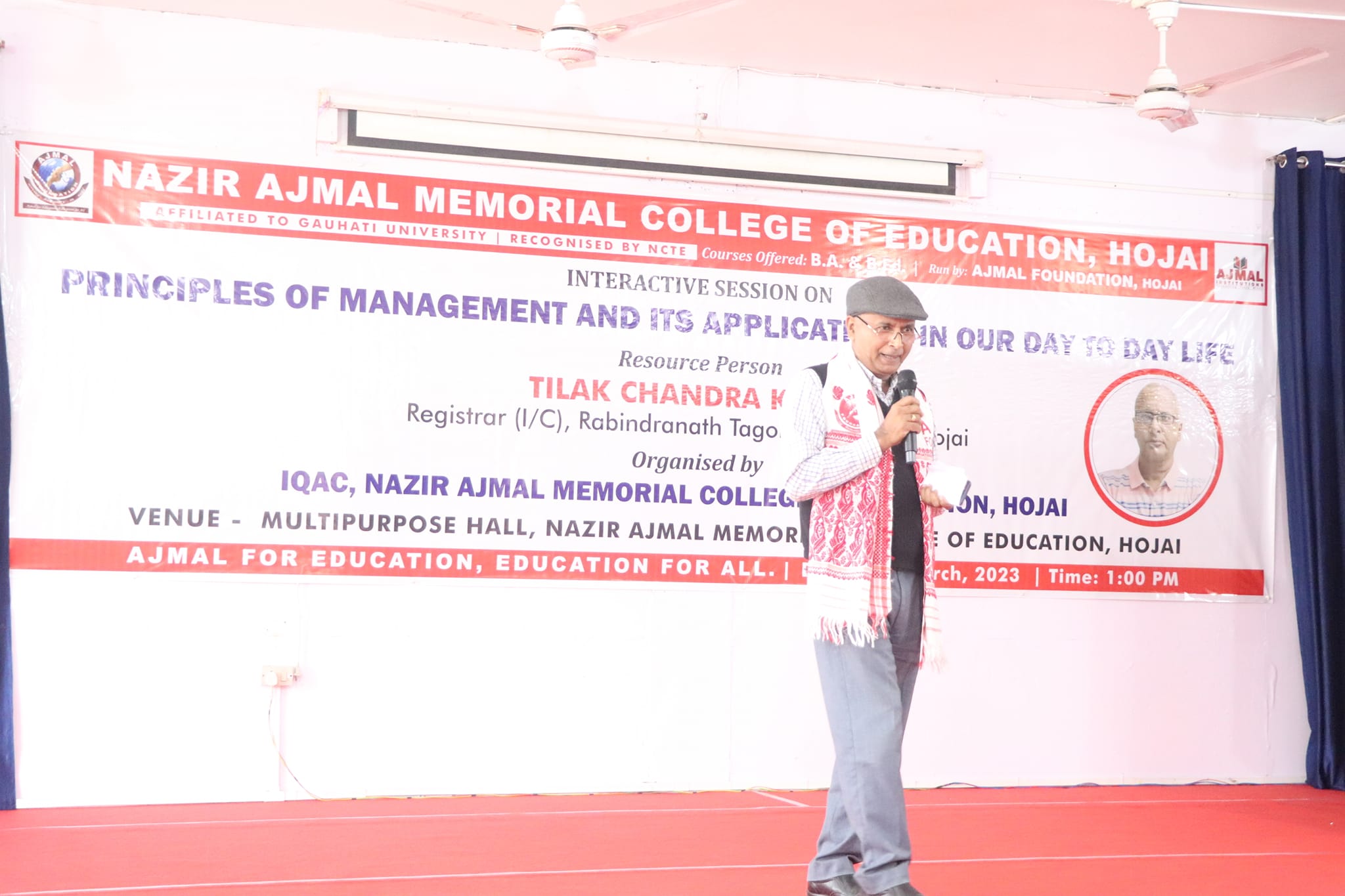 Faculty Upgradation Programme for Teacher Educators Type - Orientation Date/Time - 28th to 29th April, 2019 10AM Onwards Venue- Nazir Ajmal Memorial College of Education, Hojai Speaker- Dr. Gauri P. Hardikar, Associate Professor, Smt. Kapili Khandvala College of Education, Mumbai and Secretary, Indian Association of Life Skills Education (IALSE)