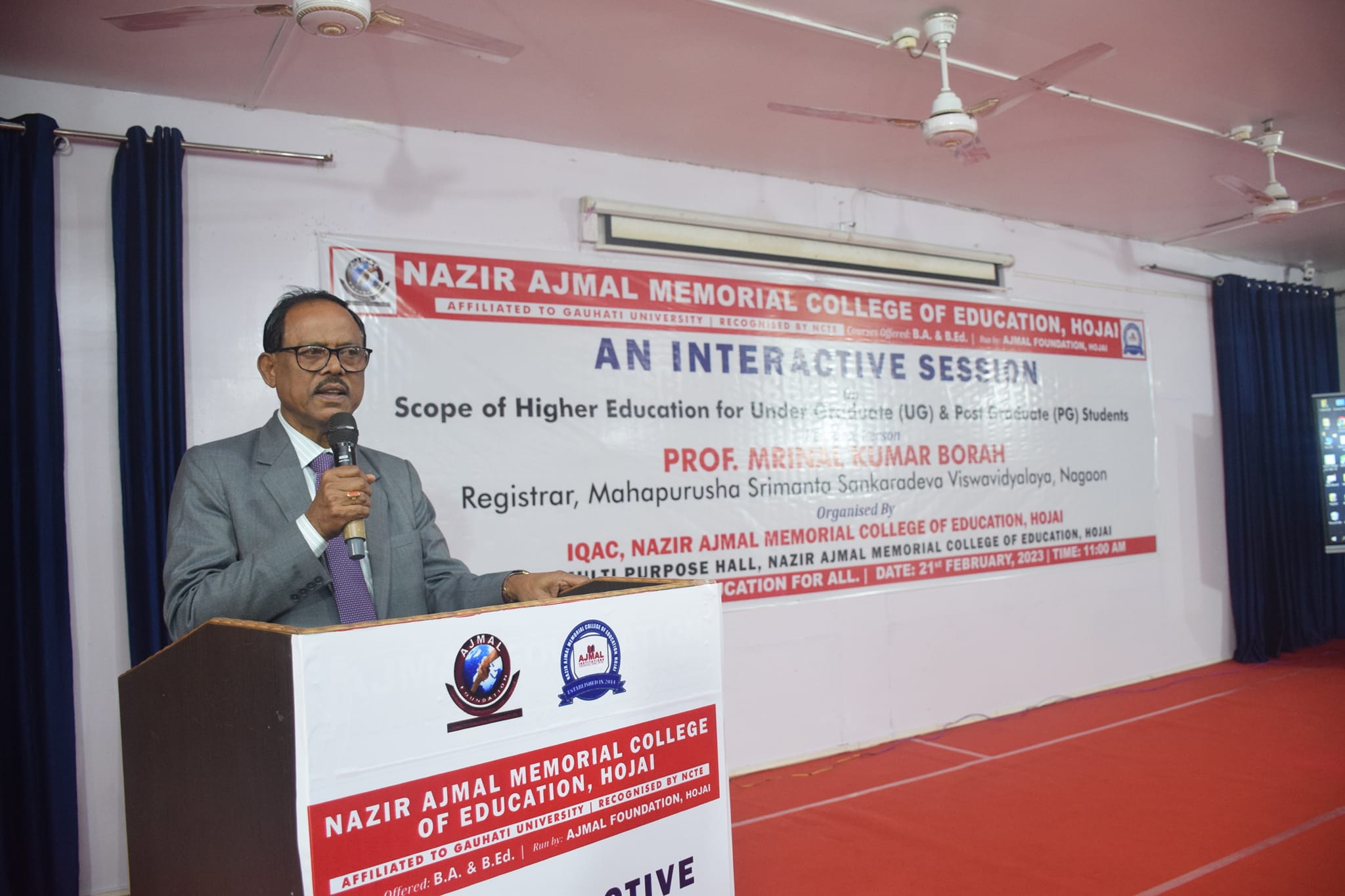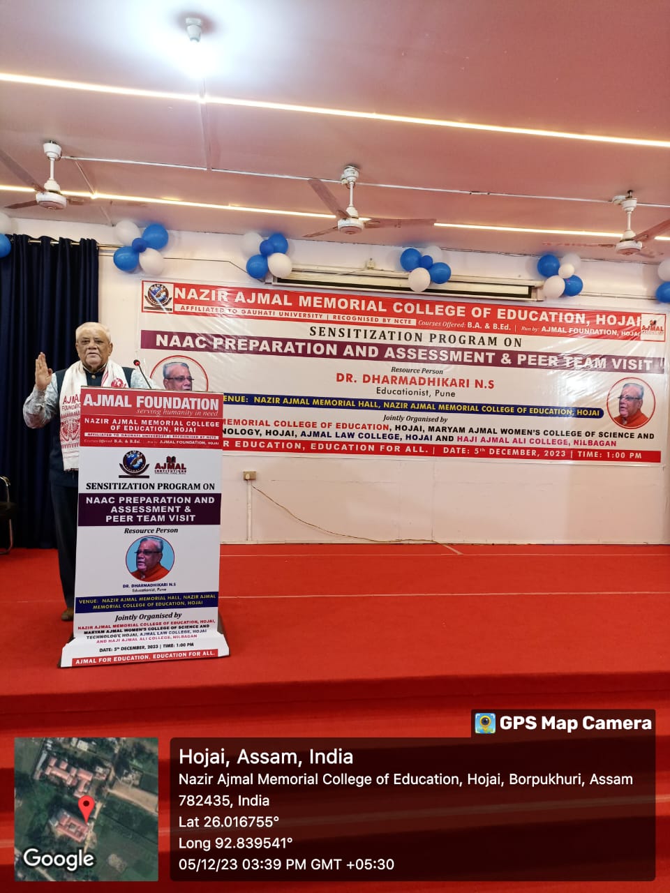 The IQAC, Nazir Ajmal Memorial College of Education, Hojai organised LECTURE SERIES on FACULTY ENRICHMENT PROGRAM Lecture Series-I :- India's Higher Education Policies: Historical Perspective on 12th July, 2025 from 2 pm onwards at Nazir Ajmal Memorial Hall. The resource person for the lecture series was Prof. Alak Kumar Buragohain, Chairperson Academics, The Assam Royal Global University and Former Vice Chancellor, Dibrugarh University.