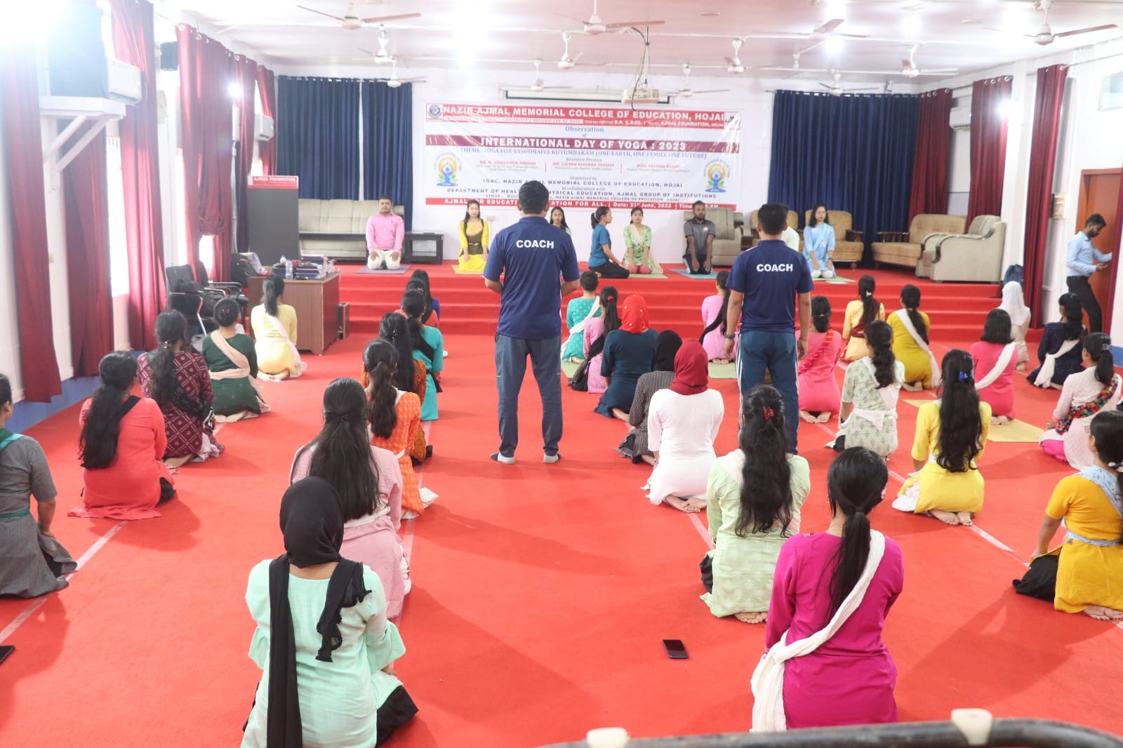 Two-Day Yoga Workshop organized by IQAC, Nazir Ajmal Memorial College of Education, Hojai on 6th and 7th December, 2024 from 9 am onwards at Nazir Ajmal Memorial Hall.