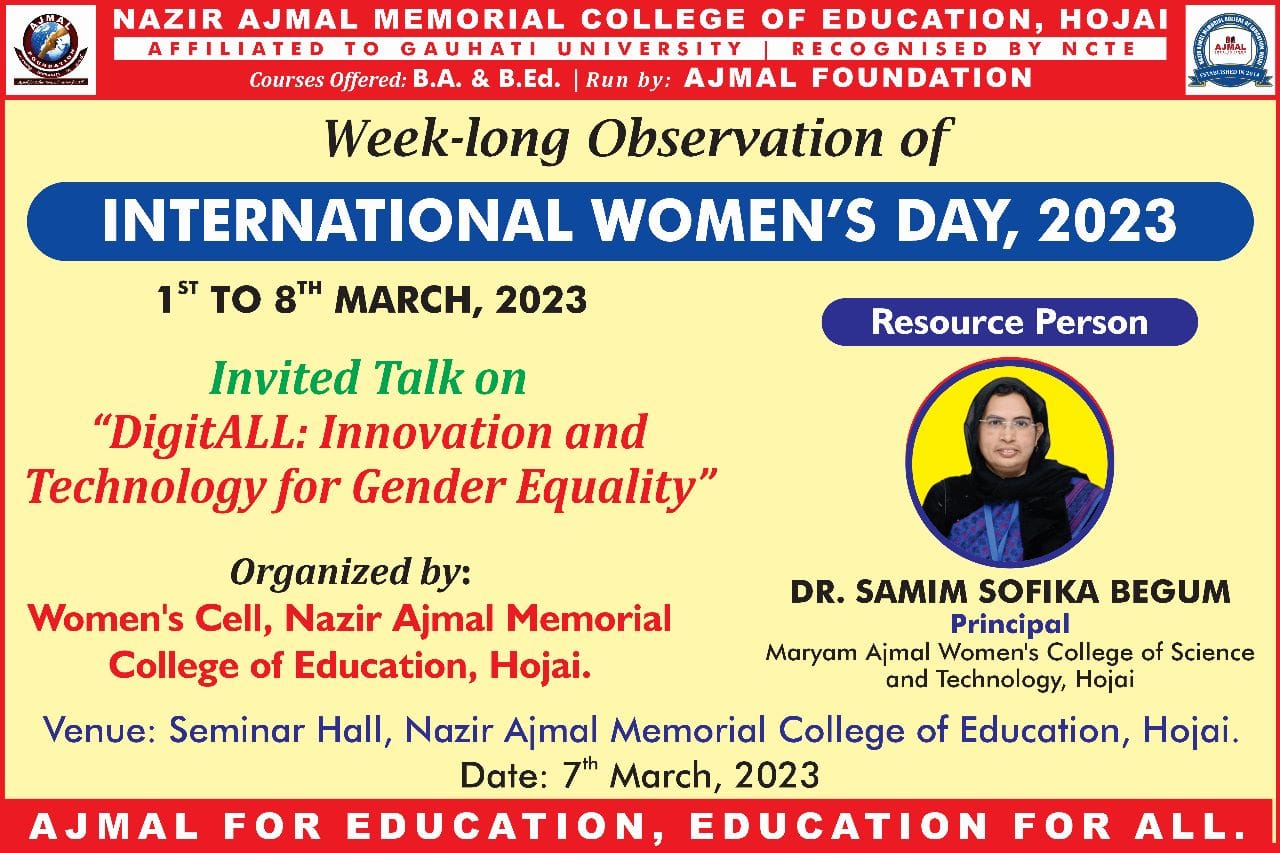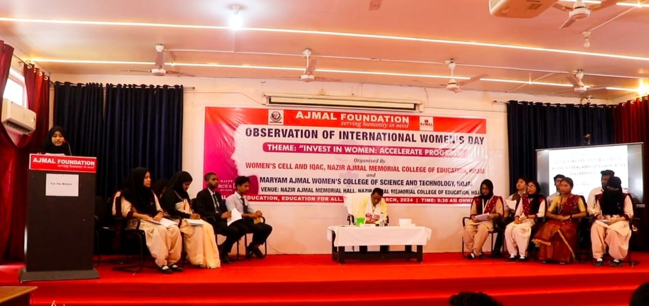 The observation of International Women's Day 2025 was jointly organized by the IQACs of Nazir Ajmal Memorial College of Education, Maryam Ajmal Women's College of Science and Technology, Ajmal Law College, and Haji Ajmal Ali College, Nilbagan. The event took place on March 8th, 2025, starting at 11 am at Nazir Ajmal Memorial Hall.