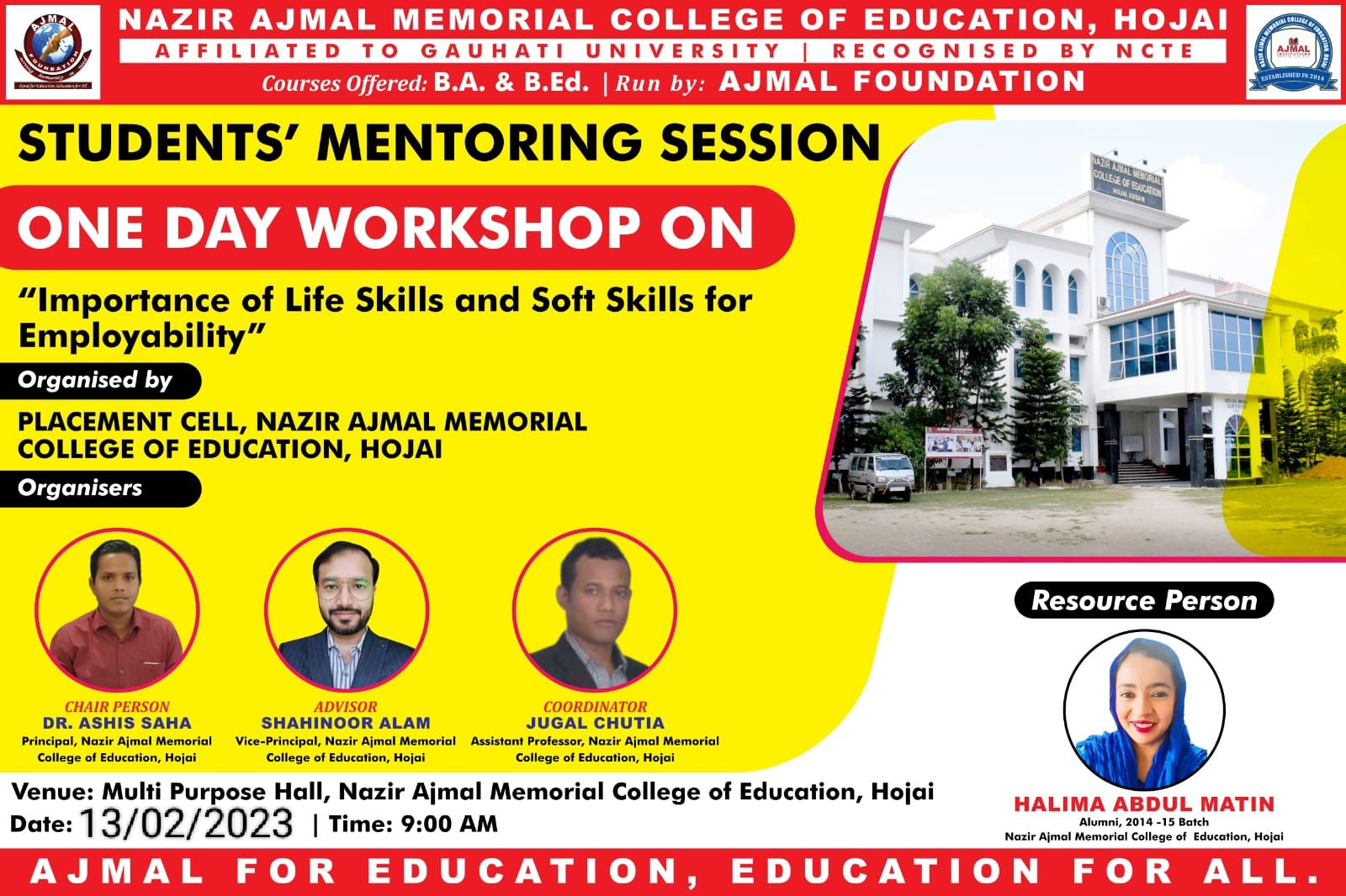 Life Skills Training Programme for Teacher Trainee Type - Workshop Date/Time - 30th April, 2019 to 4th May, 2019 10AM Onwards Venue- Nazir Ajmal Memorial College of Education, Hojai Speaker-Dr. Gauri P. Hardikar, Associate Professor, Smt. Kapili Khandvala College of Education, Mumbai and Secretary, Indian Association of Life Skills Education (IALSE)