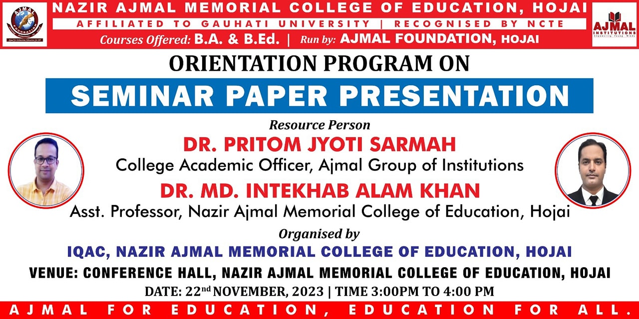The IQAC, Nazir Ajmal Memorial College of Education, Hojai organised "Seminar on World Education System" from 3rd March to 7th March, 2025 from 10 am onwards at Nazir Ajmal Memorial Hall.