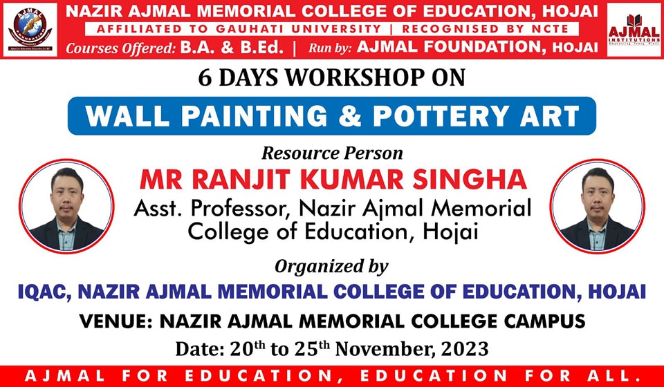 District Level Celebration of 5th Anniversary of Nasha Mukt Bharat Abhiyan (NMBA) under Hojai district organised on 18th November, 2025 at Nazir Ajmal Memorial Hall. The event was organised by Women and Child Development, Hojai in Collaboration with District Administration, Hojai and IQAC, Nazir Ajmal Memorial College of Education, Hojai and was attended by the Principal, students and faculties of the college and the dignitaries from the said bodies and Ajmal Foundation.
